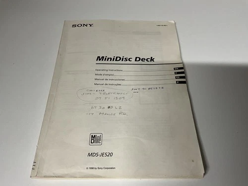 Sony Minidisc Deck MDS-JE520 Operating Instructions Manual