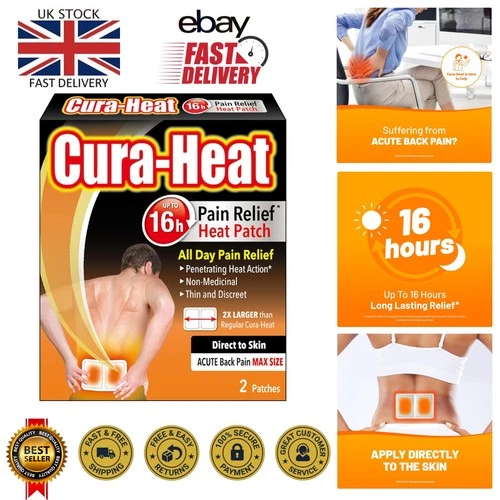 2 Large Direct-to-Skin Heat Patches - Up to 16H Targeted Relief for Back Pain