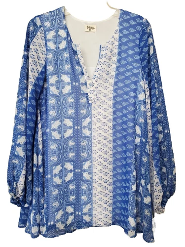Show Me Your Mumu Jamie Tunic Size Small Split Neck Elastic Cuff Mixed Pattern