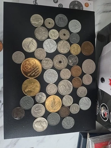 Mixed World Coins Collection + UK Pre-Decimal + Tokens Silver Check, Vintage Lot