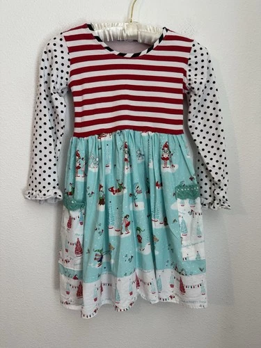 Fleur D’ Infant Christmas Dress Size 8y Mixed Media Red Stripe Elf Polka Dot