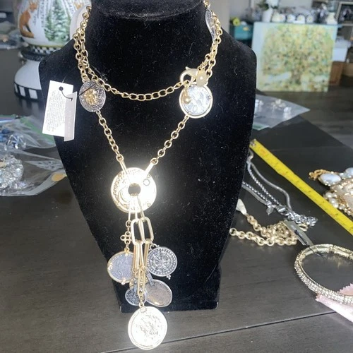Chico's Mixed Metal Gold & Silver Coin Necklace Long NWT 19” RARE Vtg