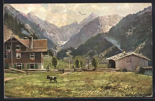 Artist postcard M. Müller jun.: Spielmannsau near Oberstdorf, Allgäu 1908