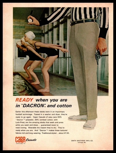 1965 Caper Casual Slacks Smith Bros. Carthage MO Swim Meet Starting Gun Print Ad