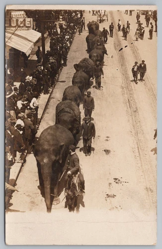 Campbell Bros. Circus Parade Elephants Kansas City MO 1909 RPPC Postcard