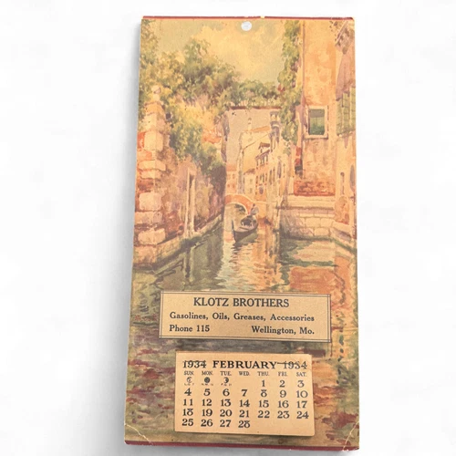 1934 Klotz Brothers Gas Oil Advertising Calendar Wellington MO Venice Art Print