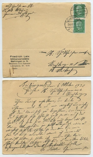 78098 - Postcard Friedrich Leix Möbelwerke, Beihingen - Ludwigsburg 7.10.1930