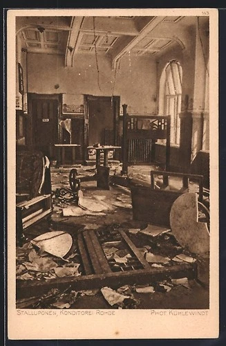 Postcard Stallupönen, pastry shop Rohde, destroyed furniture