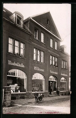 Olbernhau, postcard, furniture hall W. Bäumer with children