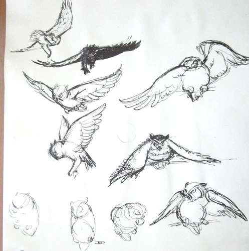 1942 BAMBI WALT DISNEY OWL ORIGINAL PRODUCTION cel drawing PHOTO MODEL SHEET