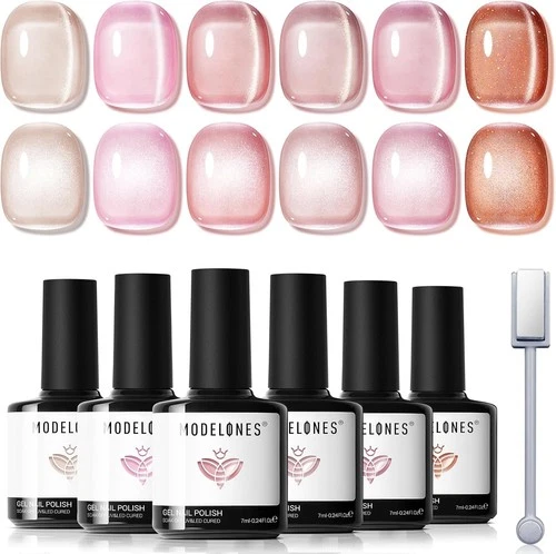Modelones Cat Eye Gel Nail Polish 6 Colors Nude Pink Cat Eye Gel Polish With