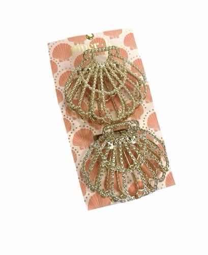 New with Tag ⚜️🐚⚜️ Piper K Gold Shell-Shaped Rhinestone Hair Claw Clip Set of 2