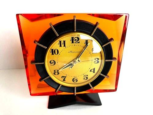MOLNIJA Amber Desk Clock Chernobyl Series Prop Soviet Space Age MCM SERVICED