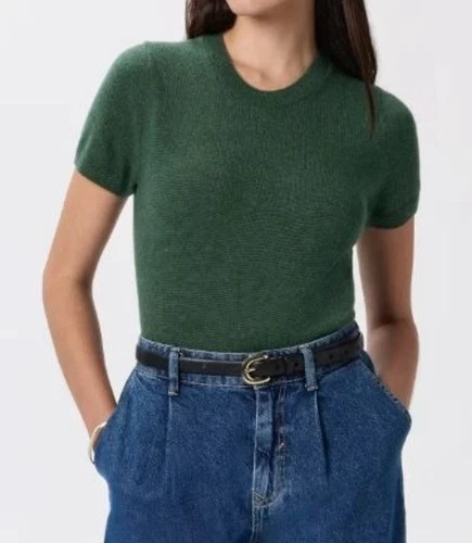 Quince Mongolian Cashmere Tee Shirt Top Women Size Large NWT Short Sleeve Green