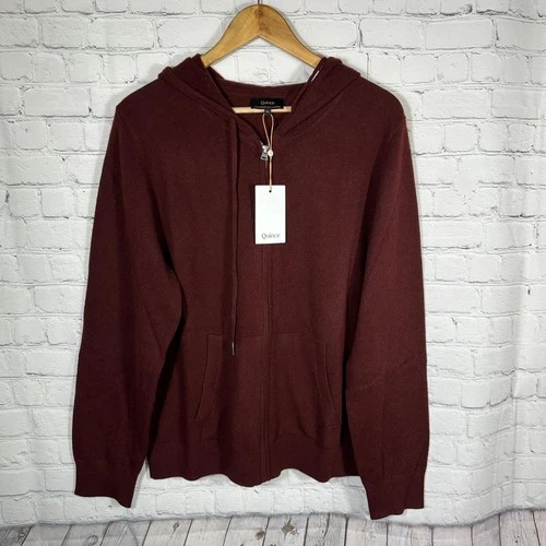 Quince Mongolian Cashmere Full-Zip Hoodie Rich Burgundy XL Soft Cozy