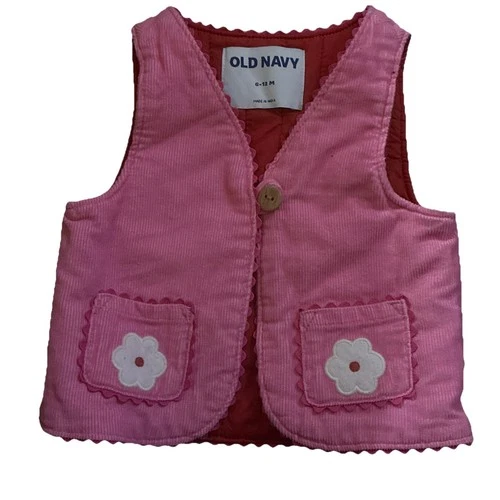 Old Navy Baby Girl Pink Embroidered Vest Quilted Lining 6-12 months Pockets