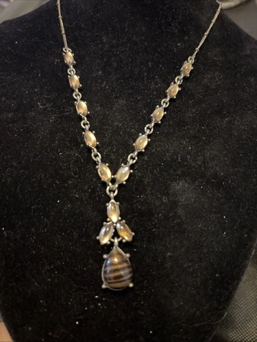 AVON Vintage Moonstone Cabachon Beaded Y-drop Necklace Tigers Eye Pendant