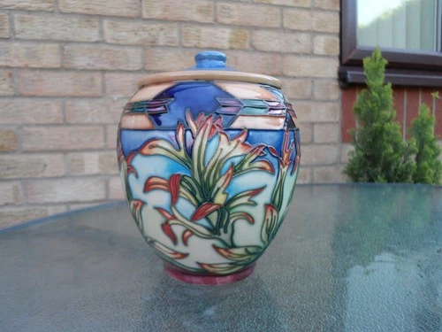 MOORCROFT POTTERY. INDIAN PAINTBRUSH PATTERN TOBBACO JAR. PHILLIP GIBSON.