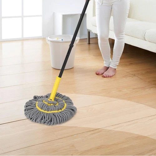 KeFanta Twist Mop Self Wringing 57in Handle Microfiber Mop Gray Yellow- USED