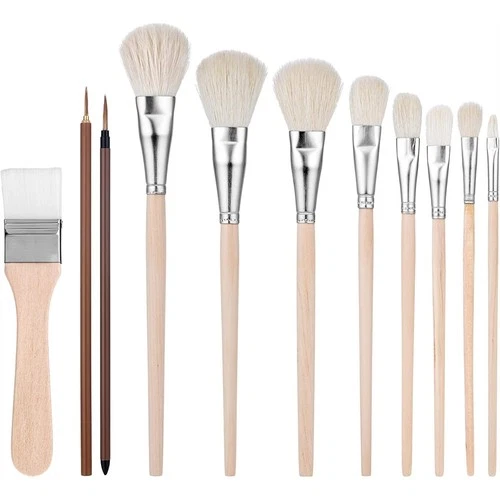 11PCS Mop Brush for Acrylic Painting, Blending Brush with Wooden Handle for8661