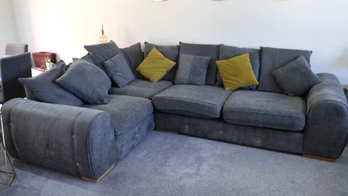 Grey Corner Sofa + Cuddle Chair + Footstool – Full Set - Large