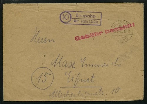 ALL. BES. FEE PAID LEUPAHN via Rochlitz, 3.8.45, Red L1 Geb