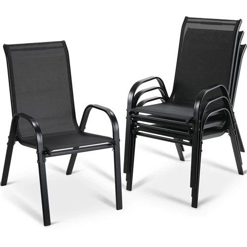 Stackable Garden Chairs with High Back Armrests & Textilene Fabric Patio Chair
