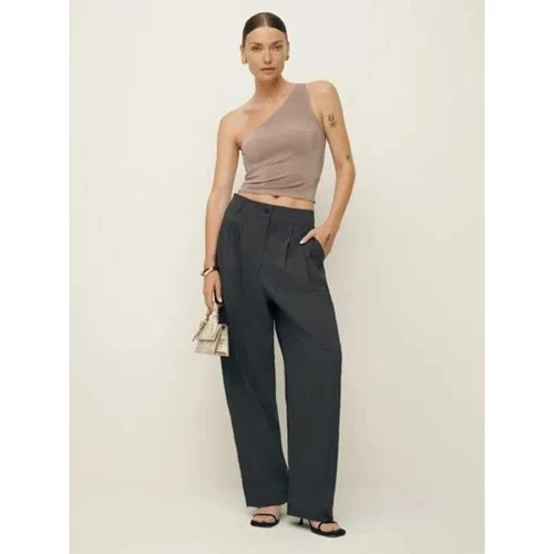 NEW NWT Reformation Danielle Oversized Pleated Trouser Pant Morel Gray Size 10