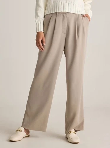 Quince Wide Leg Stretch Crepe Pleated Pants Morel Beige Gray 12