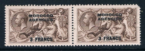 Morocco Agencies Ovrptd 3 Franc on 2sh6d Seahorses-Pair- SC 410 [SG 220c] MNH F2