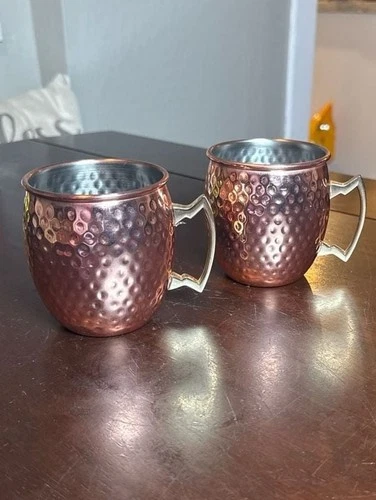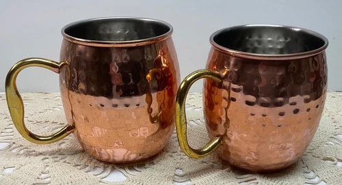 Vtg Storehouse Cooper Moscow Mule Mugs Set Of 2 Smooth Made In India Brass Read