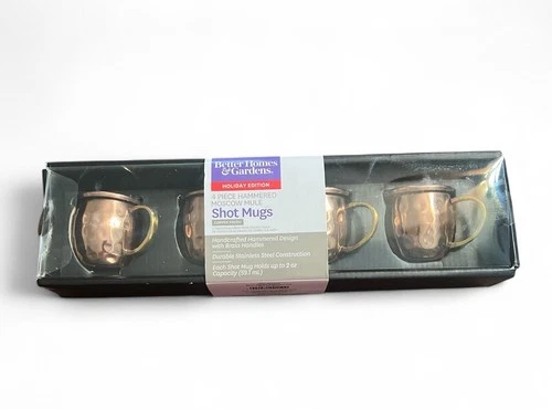 Better Homes & Gardens 4 Piece Hammered Moscow Mule Shot Mugs Holiday Edition