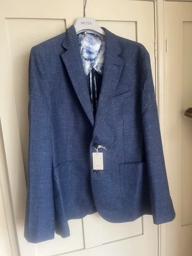 NEW: 2025 Moss Summer Luxury Linen Blazer Jacket, Dark Blue, 42 R