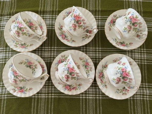 MOSS ROSE CHINA 6 x TEA CUPS & SAUCERS in Excellent Condition