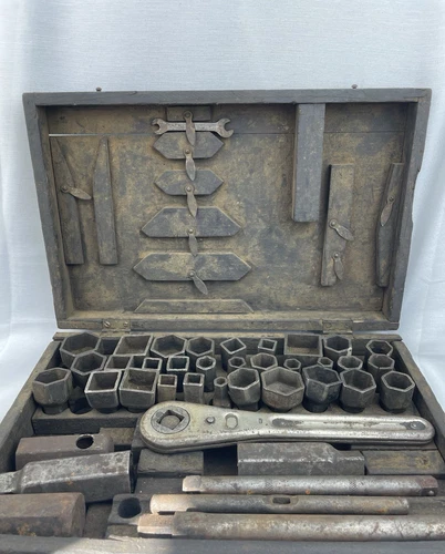 Frank Mossberg Set No14? Socket Wrench Set Wood Case Square Drive #350 Ratchet