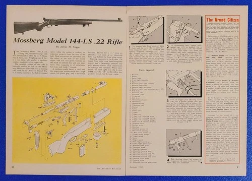 1962 MOSSBERG MODEL 144-LS .22 RIFLE - ILLUSTRATED PARTS BREAKDOWN 2 PG PRINT AD