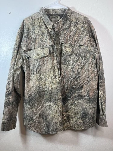 VTG FieldStaff Mossy Oak Brush Button Up Shirt Men's XL Camo Hunting Outdoor