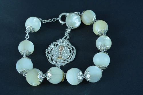 19THc Fine Religious Bracelet all caped Sterling Silver mother of pearl