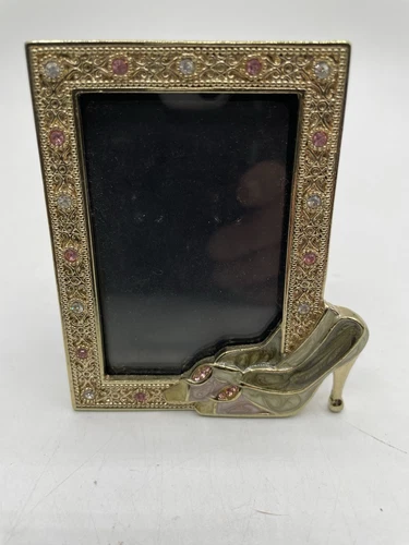 Vintage Mother Of Pearl High Heals 3.75" x 2.75" Brass Frame w/Rhinestone Trim.