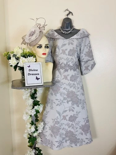 Lizabella BNWT Mother Of Bride Size 14/16 Silver Tea Length Dress & Fascinator