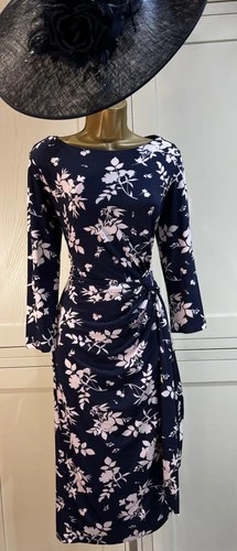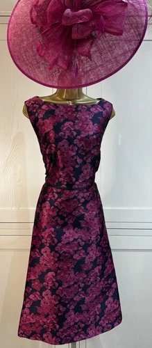 Jacques Vert UK 14 Navy Pink Dress Wedding Mother Bride Groom Guest Races Party