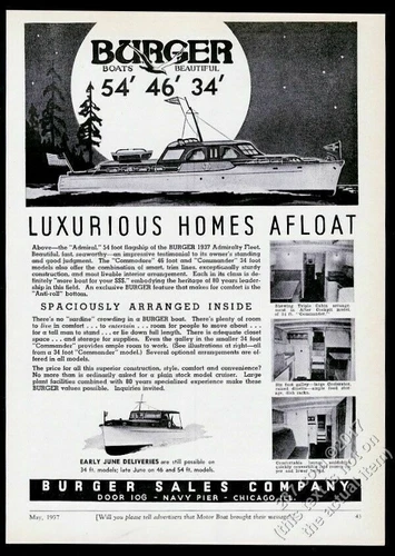 1937 Burger boat Admiral motor yacht full moon art 4 photo vintage print ad