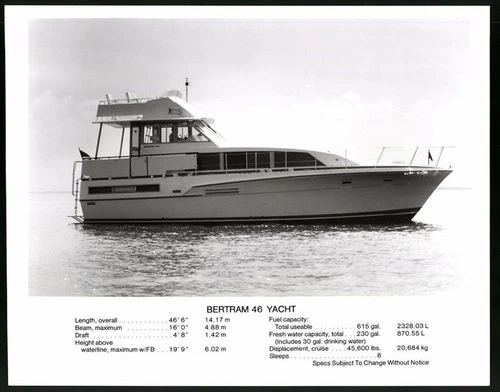 Photography Yacht Bertram 46, Motor Boat Yacht with Specifications, Large Forma