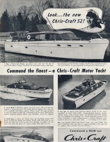 Magazine Ad - 1949 - Chris Craft - Algonac, MI - 52' Motor Yacht