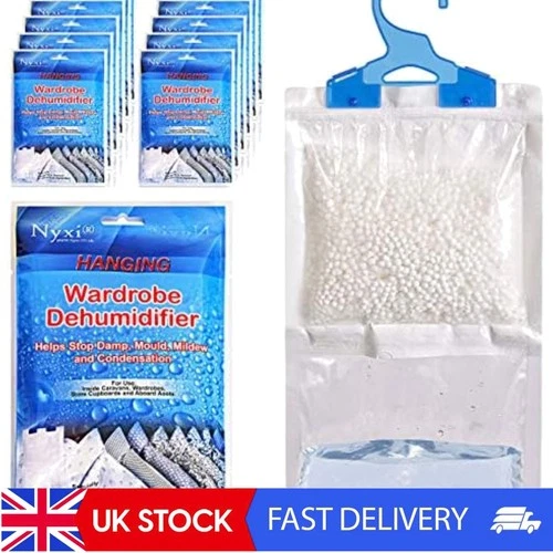 Set of 12 Hanging Dehumidifier Bags for Wardrobes & Home - Stop Damp & Mold