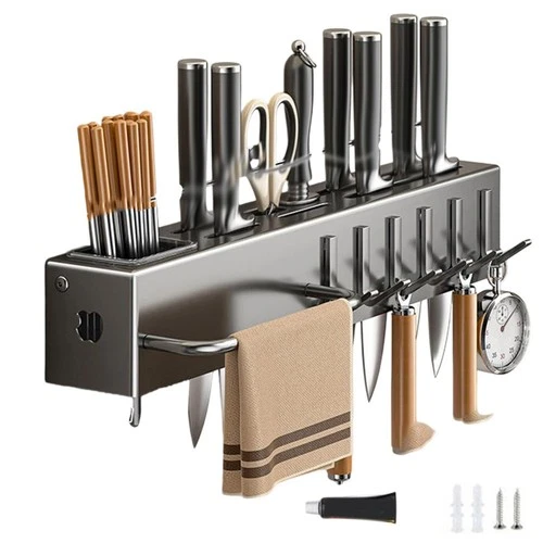 Multipurpose Kitchen Cutlery Rack Wall Mounted with Removable Hooks Gray