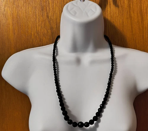 Vintage Black Faceted Beaded Necklace Graduated beads mourning jewelry
