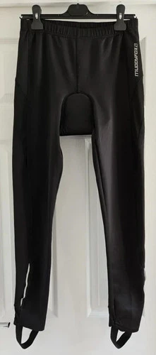 Muddyfox Black Cycling Trousers Size L Black Long Leg Stirrup Elasticated Waist