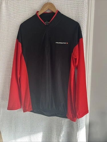 Men’s Muddyfox Cycling Top Size XL Red Black 100% Polyester Long Sleeve 1/4 Zip