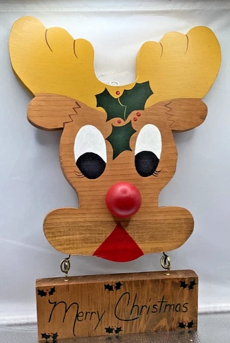 VTG Handpainted Rudolph Reindeer Mistletoe Red Nose Folk/ Christmas Decor c47